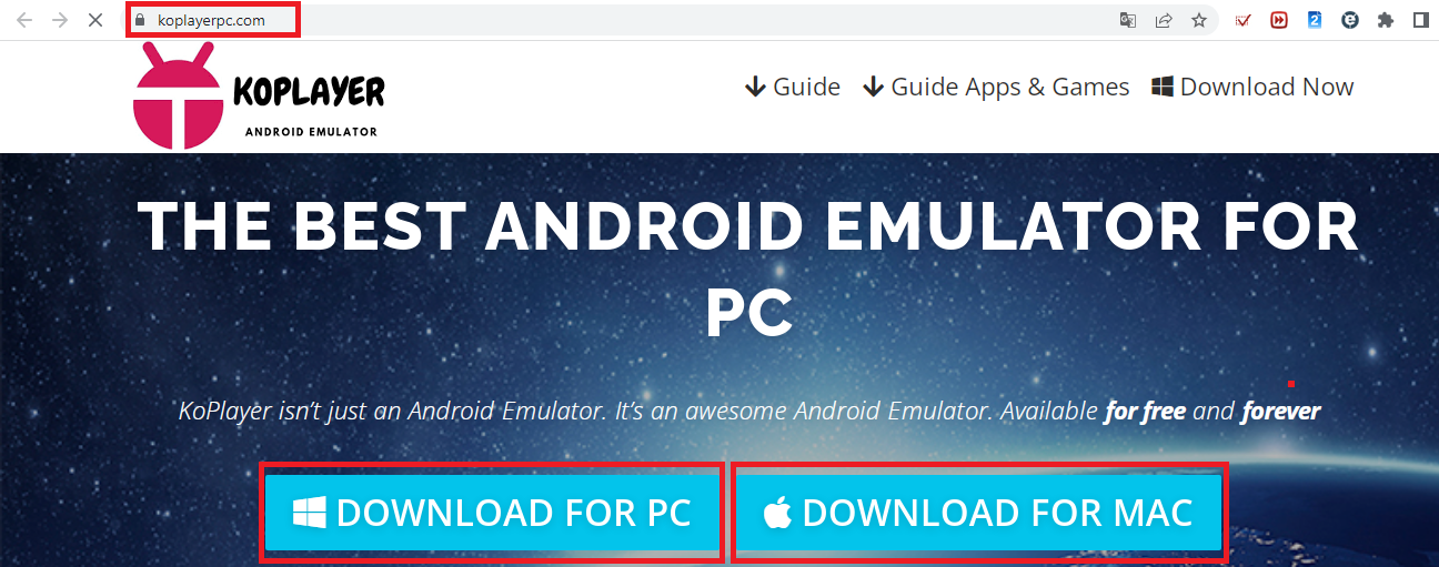 Để tải và cài đặt KoPlayer, đầu tiên bạn cần truy cập trang web chính của ứng dụng với tên miền https://koplayer.en.uptodown.com/windows/download . Nhấn vào nút DOWNLOAD FOR PC (đối với hệ điều hành Window), DOWNLOAD FOR MAC (đối với hệ điều hành Mac).