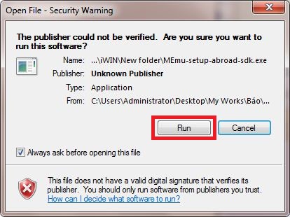 Hộp thoại xác nhận mở file cài đặt, bạn chọn “Run” để chạy file.