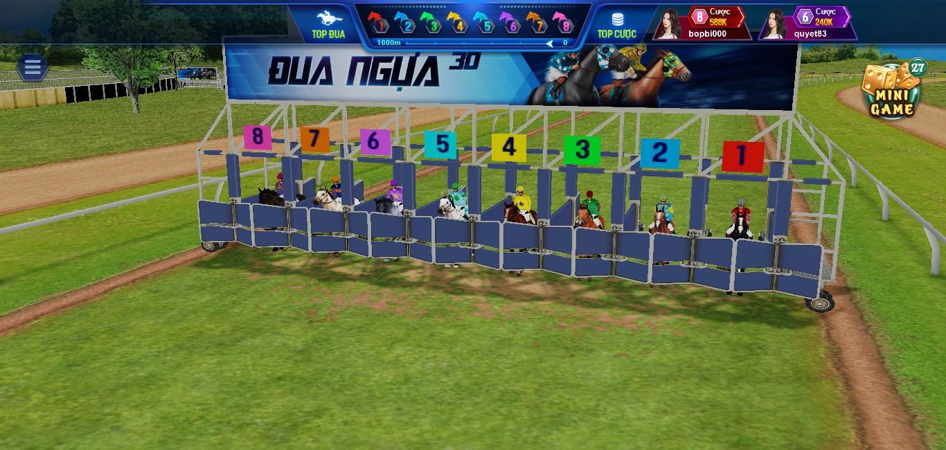 Bước vào trò chơi sẽ bao gồm có 8 con ngựa. Bạn sẽ thực hiện đặt cược trong phiên cược bắt đầu trận đua, mỗi phiên cược bạn có 45 giây. Trong thời gian đặt cược, bạn sẽ tiến hành đặt cược vào các ô cược đơn hoặc cược đôi, mỗi ô cược đều sẽ có một tỷ lệ trả thưởng tương ứng. Lựa chọn được con ngựa cán đích nhất và nhì, bạn đã may mắn thắng được phần thưởng hấp dẫn của Đua Ngựa 3D iWin Club.