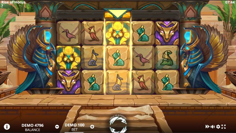Rise of Horus sẽ đưa người chơi tới với vùng đất Ai Cập cổ đại đã chôn vùi bao nhiêu kẻ tham lam muốn tìm kiếm kho báu nơi đây. Bảng kết quả trong game có hình dạng 3×5 (3 dòng 5 cột) với tổng cộng 243 dòng trả thưởng tất cả. Biểu tượng WILD sẽ chỉ xuất hiện ở cột 2, 3 và 4. Nếu có biểu tượng Scatter nào xuất hiện ở cột thứ 3 của bảng kết quả, bạn sẽ được thưởng một lượt quay miễn phí, tối đa 3 lượt quay.