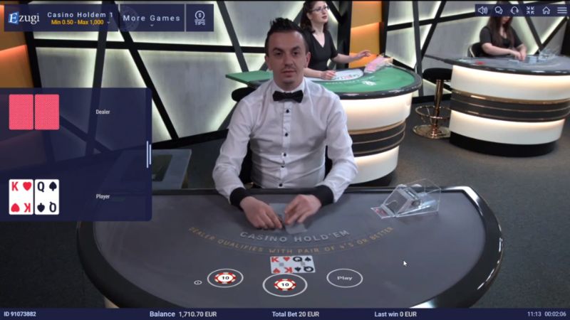 Casino Hold’em được livestream từ Live Studio tại khu vực Đông Âu của nhà phát hành. Không giống như các trò chơi Poker truyền thống, Live Casino Hold’em không giới hạn số lượng người chơi có thể chơi đồng thời cùng một lúc. Điều này có ý nghĩa rất lớn đối với các nhà cái khi gia tăng doanh thu trong khi chỉ mất khoản đầu tư tương đối nhỏ.