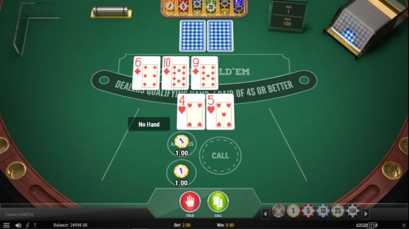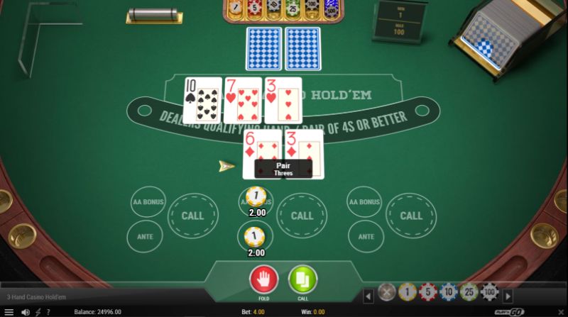 Trong game Casino Hold’em, bạn sẽ được chơi với bộ bài 52 lá. Có 2 phần để đặt cược đó là Ante và AA Bonus. Sau khi đặt cược Ante hoặc AA Bonus, bạn và nhà cái mỗi người nhận được hai lá bài úp xuống, 3 lá bài sẽ đưa ngửa trên bàn. Bạn phải quyết định FOLD hoặc CALL. Nếu úp bài, bạn sẽ mất cả đặt cược Ante và đặt cược Jackpot từ đầu. Nếu bạn CALL, bạn có thể đặt thêm tiền cược. Nếu ai có 5 lá bài ngon hơn thì sẽ thắng tiền.