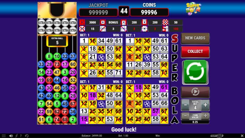 Sẽ có 4 ô số, mỗi ô có 25 số cho sẵn. Sau khi quay, 44 quả bóng với các con số khác nhau sẽ được thả xuống. Nếu như trong 44 con số này tạo nên được các dòng thắng trong 4 ô số đã cho là người chơi sẽ được tiền thưởng. Trong trường hợp 25/44 quả bóng trùng với toàn bộ ô số nào đó, bạn sẽ được BINGO. Bên cạnh đó người chơi có thể bỏ tiền ra mua thêm bóng để tăng cơ hội chiến thắng, tối đa 10 quả.