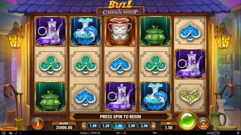 Trong game slot Bull in a China Shop, bảng kết quả có hình dạng 3×5 (3 dòng 5 cột) với 20 dòng thắng tất cả. Phần thưởng trong game tối đa lên đến 5.800 lần mức cược. 3 biểu tượng Scatter hình con trâu vàng khi xuất hiện sẽ kích hoạt 10 lượt quay miễn phí. Càng có nhiều biểu tượng hình con bò xuất hiện càng tốt, đó là điềm báo rằng bạn sẽ ăn được tiền đó.