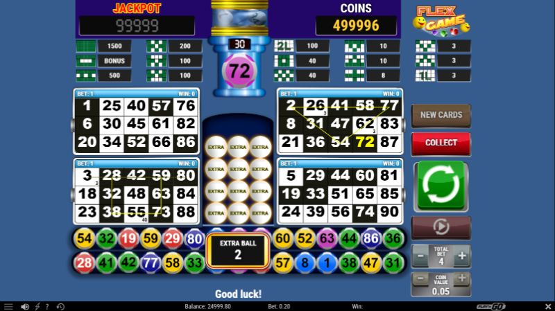 Sẽ có 4 ô số, mỗi ô có 15 số có sẵn. Sau khi quay, 30 quả bóng với các con số khác nhau sẽ được thả xuống. Nếu như trong 30 con số này tạo nên được các dòng thắng trong 4 ô số đã cho là người chơi sẽ được tiền thưởng. Trong trường hợp 15/30 quả bóng trùng với toàn bộ ô số nào đó, bạn sẽ được BINGO. Bên cạnh đó người chơi có thể bỏ tiền ra mua thêm bóng để tăng cơ hội chiến thắng, tối đa 12 quả.