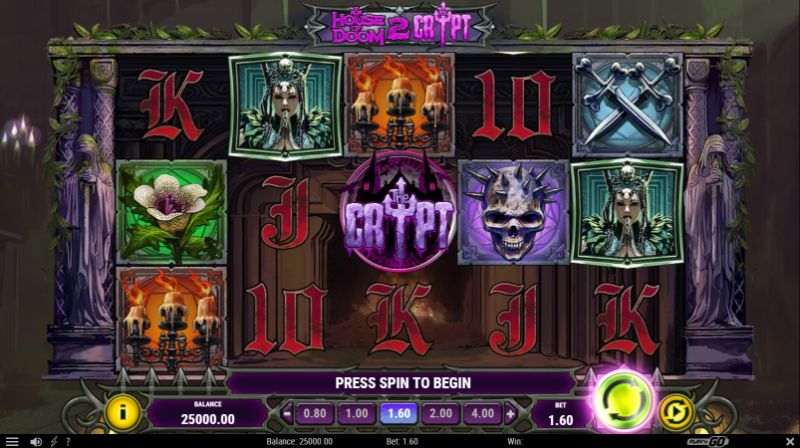 House of Doom 2: The Crypt mang một chút hơi hướng kinh dị, nếu sợ ma hơn cả sợ hết tiền thì không nên dại chơi trò này. Bảng kết quả trong game có hình dạng 3×5 (3 dòng 5 cột) với 20 dòng trả thưởng tất cả. Phần thưởng lớn nhất trong game lên đến 6.000 lần mức cược. Trò chơi có tới 4 biểu tượng WILD khác nhau, mỗi khi xuất hiện chúng sẽ chiếm diện tích của nguyên một cột và tăng cơ hội ăn thưởng cho người chơi.