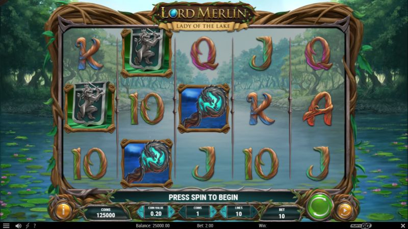 Trong game slot Lord Merlin and The Lady of The Lake, bảng kết quả có hình dạng 3×5 (3 dòng 5 cột) với 10 dòng trả thưởng. 3 biểu tượng Scatter xuất hiện sẽ mang đến 8 lượt quay miễn phí. Trong lượt quay miễn phí, biểu tượng Scatter sẽ chuyển hết thành biểu tượng WILD để giúp người chơi ăn tiền dễ hơn. Phần thưởng lớn nhất trong game cực khủng lên đến 500.000 Coins.