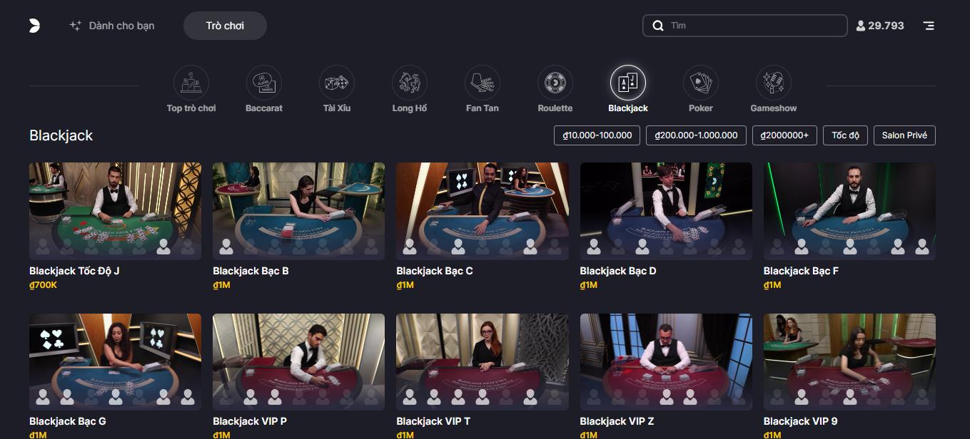 Những game BlackJack nổi tiếng nhất và đông người chơi nhất tại Nhà cái iWIN Club là: BlackJack Tốc Độ E, BlackJack Bạc A đến G, BlackJack VIP O đến VIP 14, BlackJack Tốc Độ VIP A đến VIP C, BlackJack A đến J, BlackJack Tiệc Tùng, BlackJack Grand VIP.