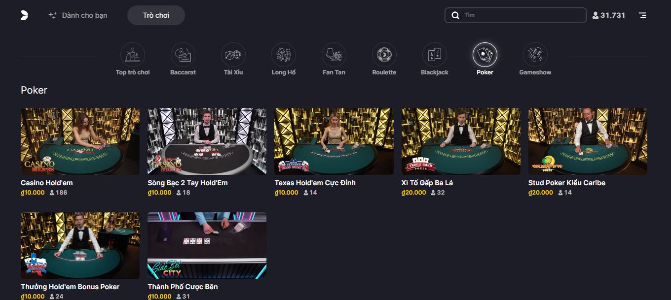 Những trò chơi Poker được nhiều người chơi yêu thích nhất tại iWIN Club đó là: Casino Hold’em, Sòng Bạc 2 Tay Hold’em, Texas Hold’em Cực Đỉnh, Xì Tố Gấp Ba Lá, Stud Poker Kiểu Caribe, Thưởng Hold’em Bonus Poker, Thành Phố Cược Bên.