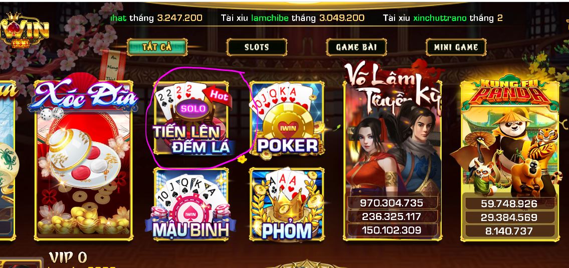 Tiếp đến chọn game Tiến lên đếm lá nằm ngay trên giao diện trang chủ.